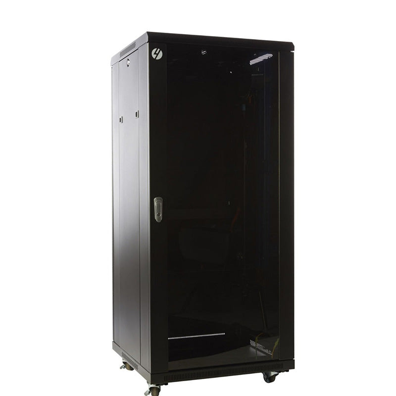 The server rack is supplied fully assembled with solid top and base, plus removable side panels, front glass door all lockable for added security. This network cabinet provides the flexibility for customers who know exactly what they require of their server rack. Possible usage applications include housing small servers, DVR, security equipment, routers, patch panels, switches and rackmount equipment, Telephone Systems and PABX equipment and Network and Communications Equipment.