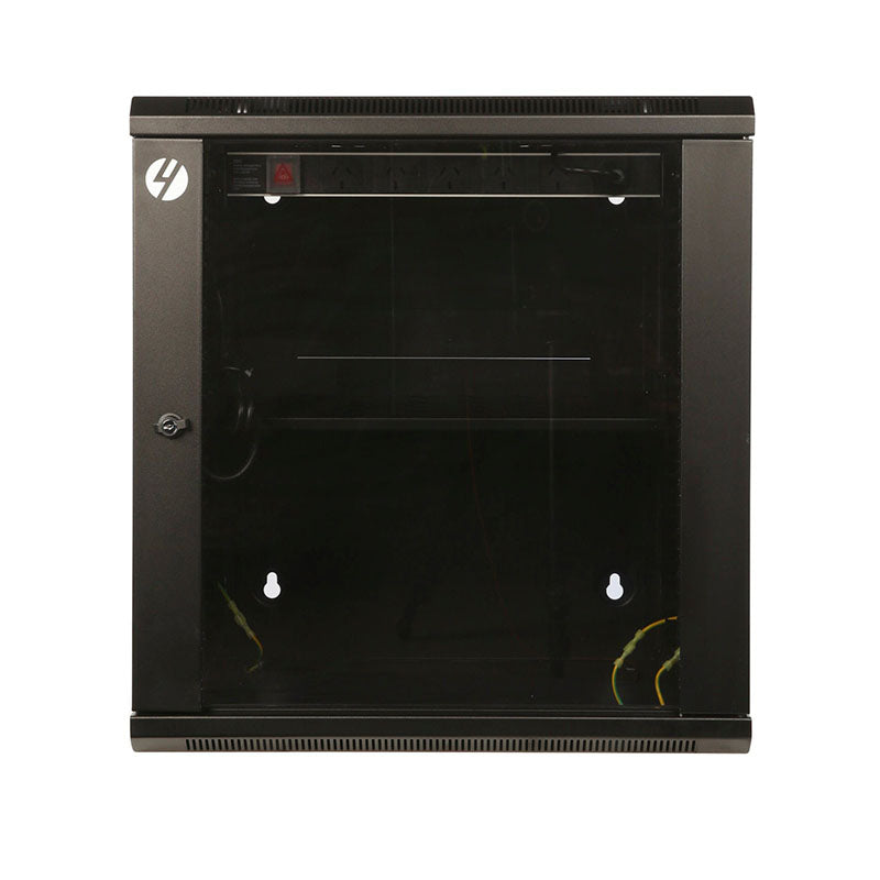The server rack is supplied fully assembled with a solid top and base, plus removable side panels, and a front glass door all lockable for added security. This network cabinet provides flexibility for customers who know exactly what they require of their server rack. Possible usage applications include housing small servers, DVR, security equipment, routers, patch panels, switches and rack mount equipment, Telephone Systems and PABX equipment and Network and Communications Equipment.