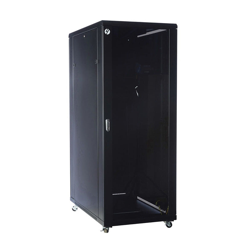 The high-quality freestanding server rack is supplied fully assembled with solid top and base, plus removable side panels, Lockable Tempered Glass Front Door and Solid Steel Side & Back Doors all lockable for added security. The new lockable side door design is created to get maximum flexibility with minimum footprint without sacrificing security.