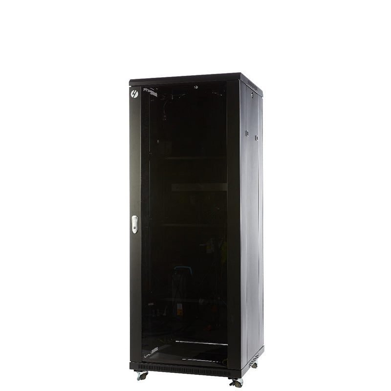 The server rack is supplied fully assembled with solid top and base, plus removable side panels, front glass door all lockable for added security. This network cabinet provides flexibility for customers who know exactly what they require of their server rack. Possible usage applications include housing small servers, DVR, security equipment, routers, patch panels, switches and rackmount equipment, Telephone Systems and PABX equipment and Network and Communications Equipment.