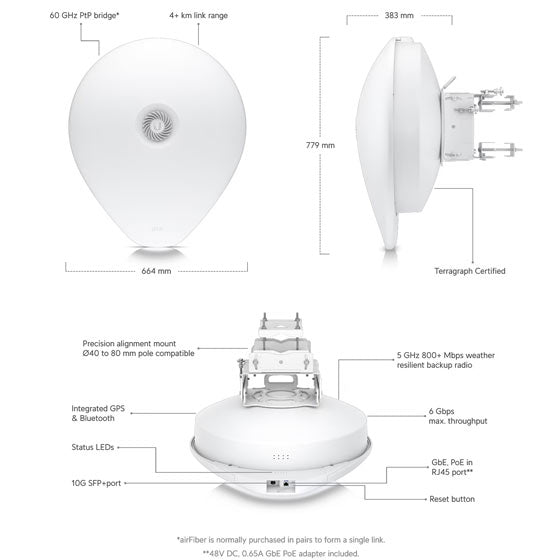 NOTE: To form a single link, we recommend purchasing 2x airFiber (as a pair)