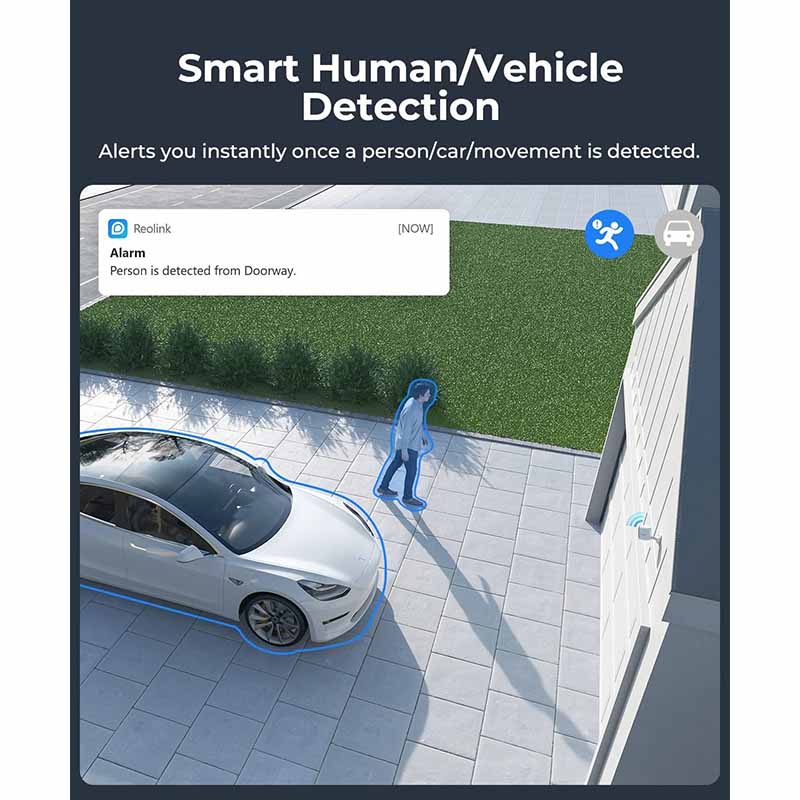 Alerts you instantly once a person/car/movement is detected. The camera can be controlled remotely from anywhere in the world. Built-in mic & speaker allow you to listen and talk back to whoever the camera catches in real time: a "hello" to friends or a "Get away!" to foes. Anytime, anywhere. Click to check what's going on with your home or business via free Reolink App or Client, and respond instantly.