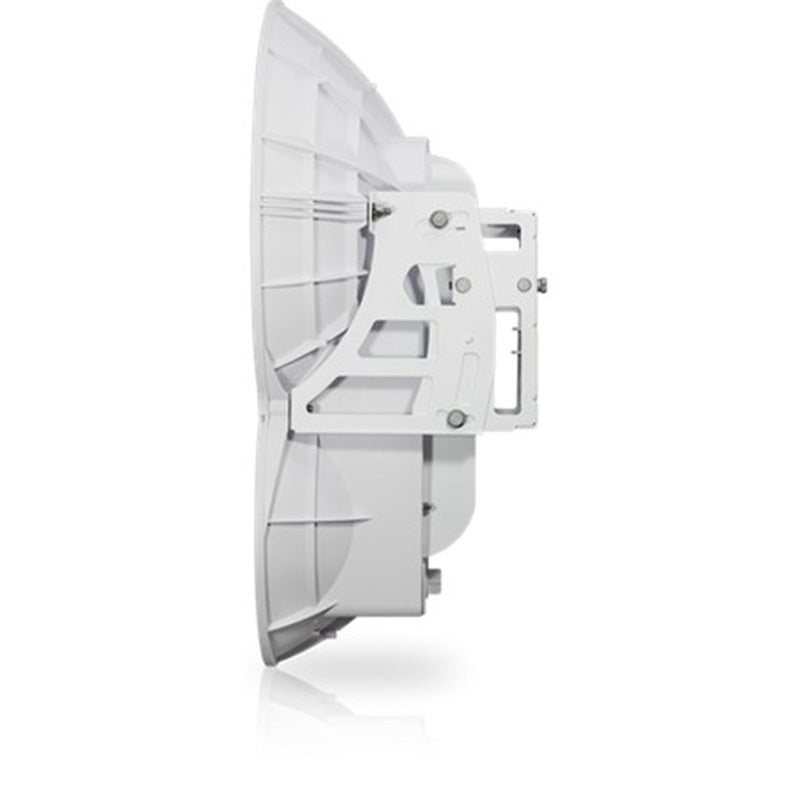 Systems for millimeter-wave frequencies typically experience RF losses when part of the RF is lost in the switches and filters. The Ubiquiti airFiber R&D team eliminated such RF losses with separate yet integrated TX and RX antennas, so the link budget is robust and the Ubiquiti airFiber AF-24 has better noise figure and higher transmit power efficiency.