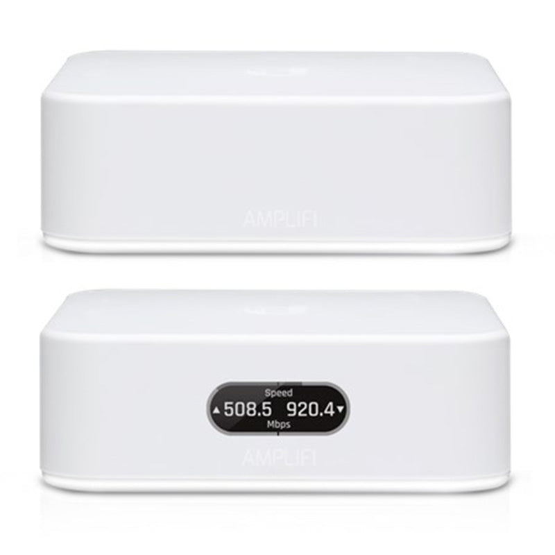 The AmpliFi Instant Wi-Fi System includes a router with an easy-to-use touchscreen display, 1 Gigabit Ethernet port, a WAN port, an Ethernet cable, and one MeshPoint with an Ethernet port to maximize coverage and eliminate dead zones in your home.