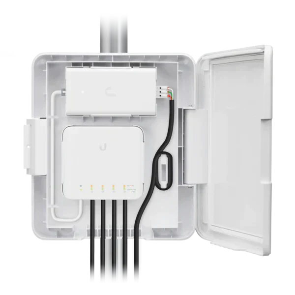 The USW Flex Utility can be easily mounted on a pole, provides clean cable management and screw lock for security.