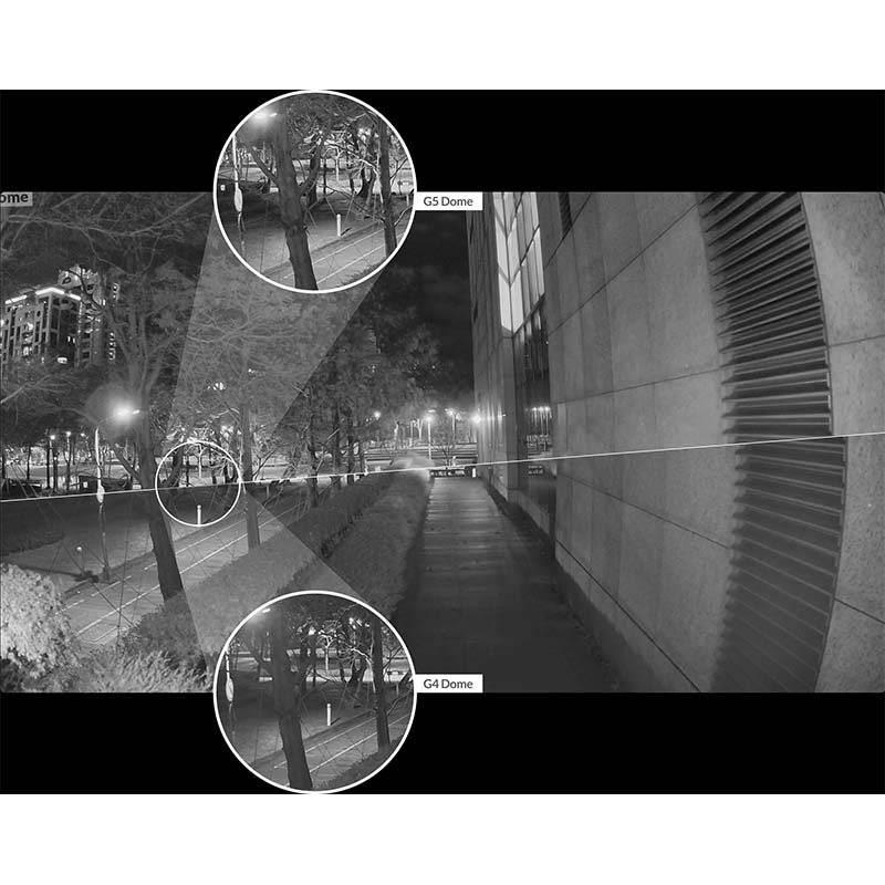 The G5 Dome is also protected with an IPX4-rated, weatherproof enclosure with IK08-rated vandal resistance, making it a great choice for monitoring highly populated areas and venues.